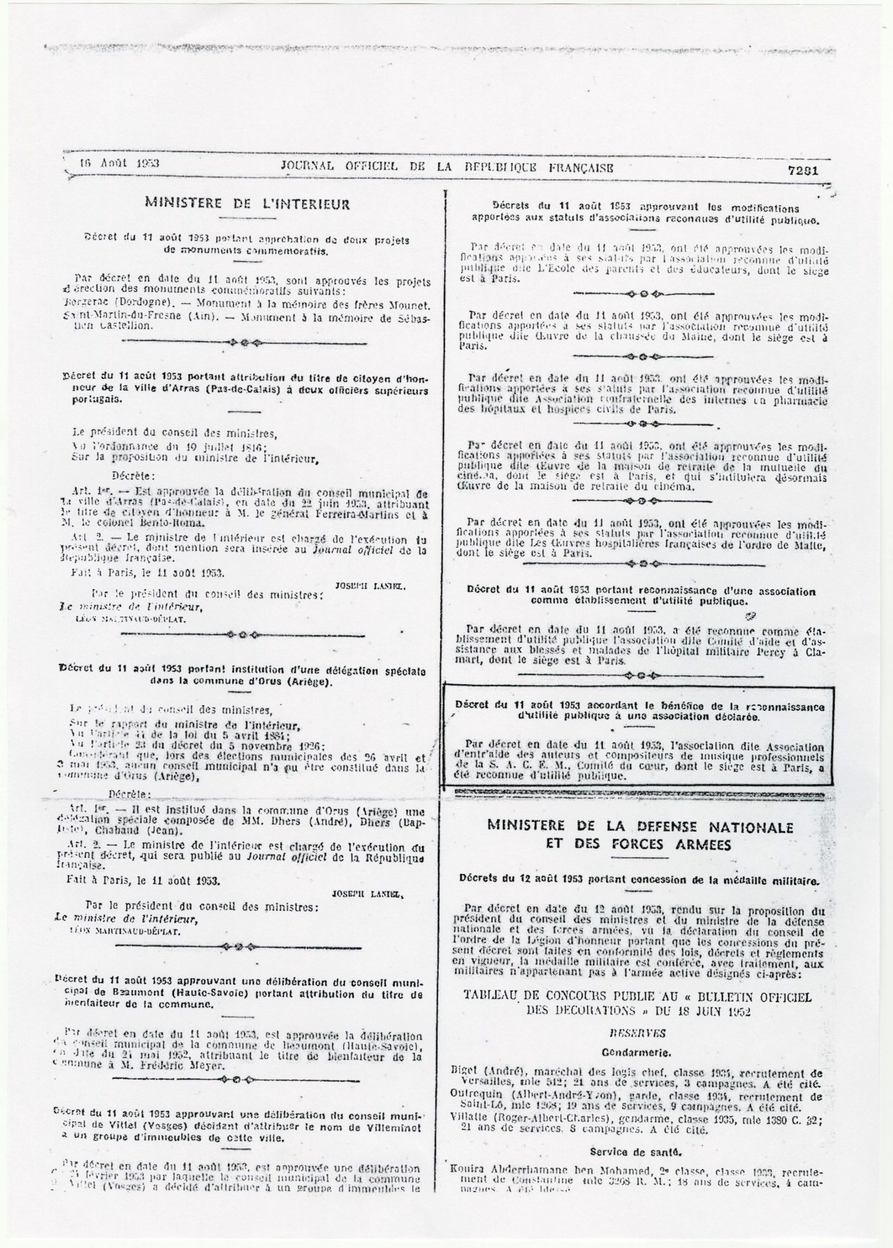 Archive : décret du 11 août 1953.